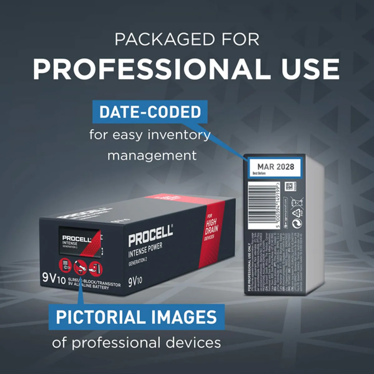 Delivers Longer lasting power (vs. prior Procell Alkaline 9V batteries) in high drain professional devices, that may result in fewer battery replacements and may therefore lead to savings on operating costs that are associated with battery replacement.