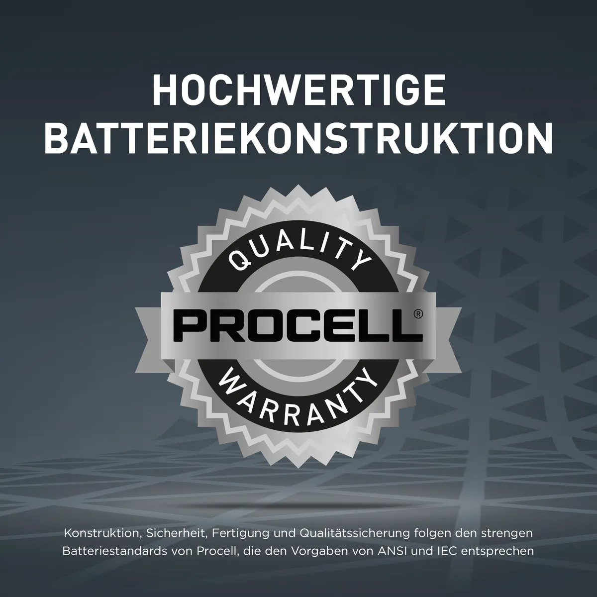 Konstruktion, Sicherheit, Fertigung und Abnahme folgen den strengen Batteriestandards von Procell, die den Vorgaben von ANSI und IEC entsprechen.