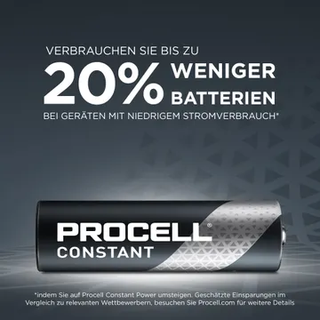 Sparen Sie in Ihrem Unternehmen bis zu 20 % durch die Umstellung auf ein duales Procell Portfolio – Procell Constant für Geräte mit geringem Stromverbrauch und Procell Intense für Geräte mit hohem Stromverbrauch (geschätzte Einsparungen im Vergleich zu relevanten Wettbewerbern)