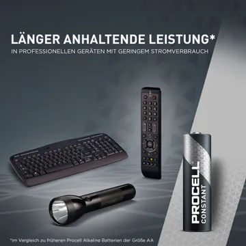 Länger anhaltende Leistung (im Vergleich zu früheren Procell Alkaline Batterien der Größe AA) in professionellen Geräten mit geringem Stromverbrauch – das kann zu weniger Batteriewechseln und damit zu Einsparungen bei den Betriebskosten führen, die mit dem Batteriewechsel verbunden sind