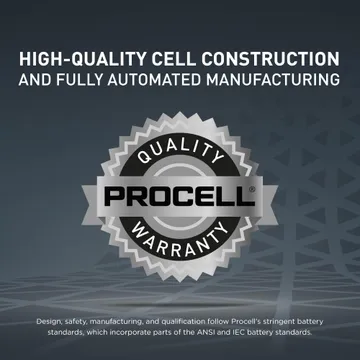 Design, safety, manufacturing, and qualification follow Procell’s stringent battery standards, which incorporate parts of the ANSI and IEC battery standards.