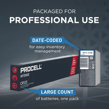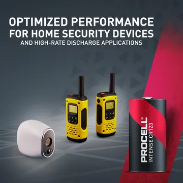 Procell High Power Lithium CR123 industrial batteries are designed to deliver reliable and safe power in professional devices with high rate discharge under intermittent or continuous drain, such as security equipment.