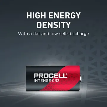 Procell High Power Lithium CR2 industrial batteries are designed to deliver reliable and safe power in professional devices with high rate discharge under intermittent or continuous drain, such as security equipment.