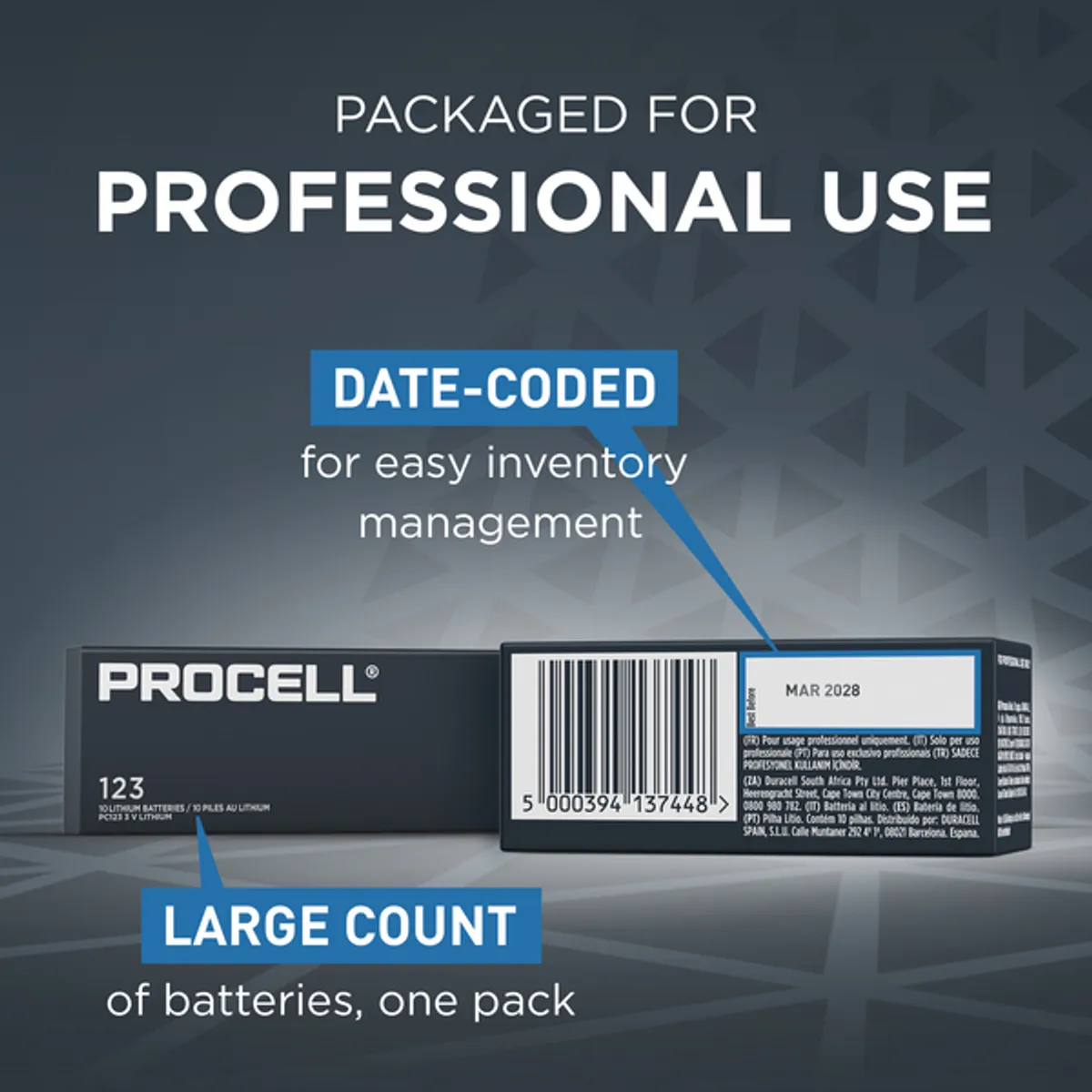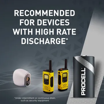 Procell High Power Lithium CR123 industrial batteries are designed to deliver reliable and safe power in professional devices with high rate discharge under intermittent or continuous drain, such as security equipment.