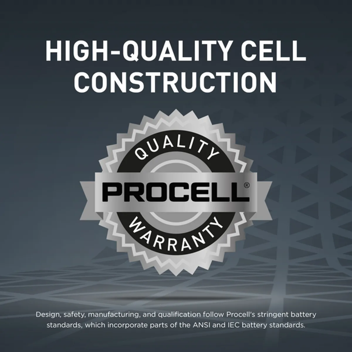 Design, safety, manufacturing, and qualification follow Procell’s stringent battery standards, which incorporate parts of the ANSI and IEC battery standards.