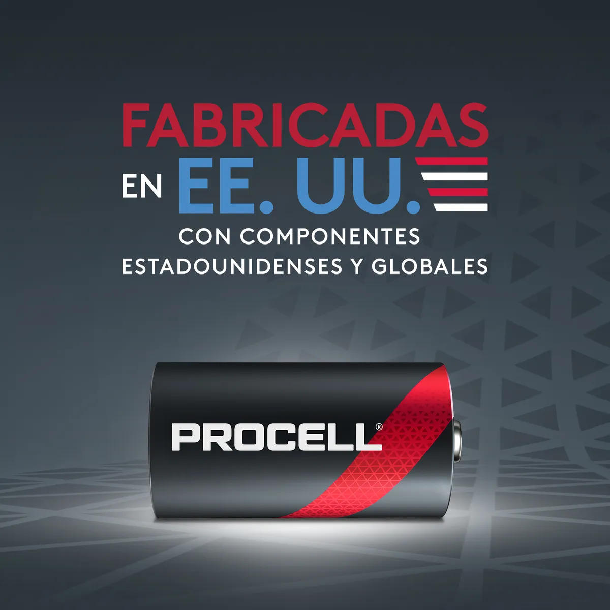 Las pilas alcalinas D Procell, fabricadas en EE. UU. por Duracell con componentes nacionales e internacionales, ofrecen un rendimiento confiable y duradero para dispositivos profesionales. Diseñadas para reducir reemplazos, costos de mano de obra y desperdicio, contribuyendo a la eficiencia operativa y a la responsabilidad ambiental.