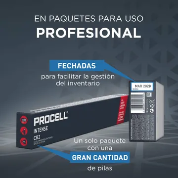 Las pilas profesionales Procell Intense Litio de alta potencia CR2 están diseñadas para ofrecer una potencia fiable y segura en dispositivos profesionales con una alta tasa de descarga y un consumo intermitente o continuo, como pueden ser los equipos de seguridad.
