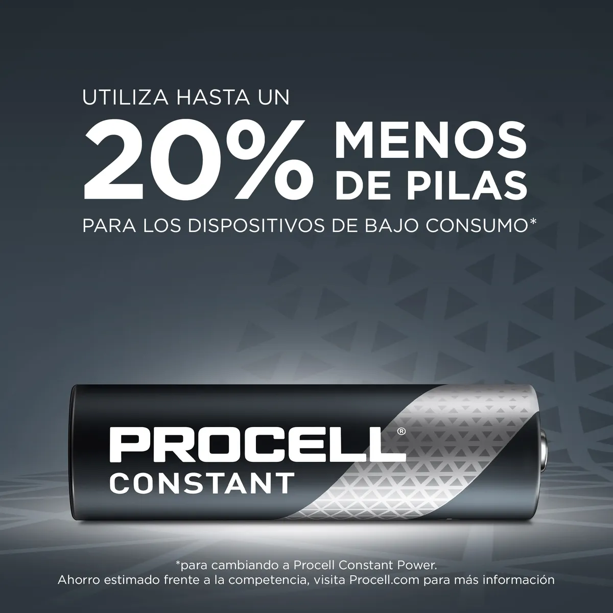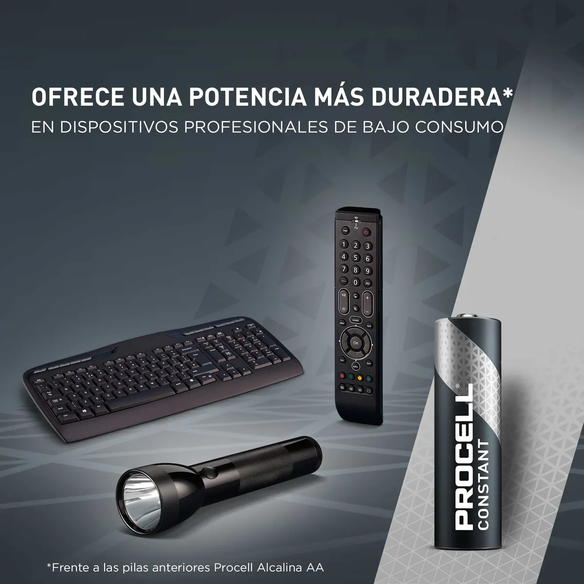 Las pilas industriales alcalinas Procell Constant AA son ideales para dispositivos profesionales de bajo consumo que requieren corriente constante durante un largo período de tiempo, como detectores de humo/monóxido de carbono, teclados de seguridad, mandos a distancia, ratones inalámbricos, teclados, sensores de movimiento y fluxómetros.