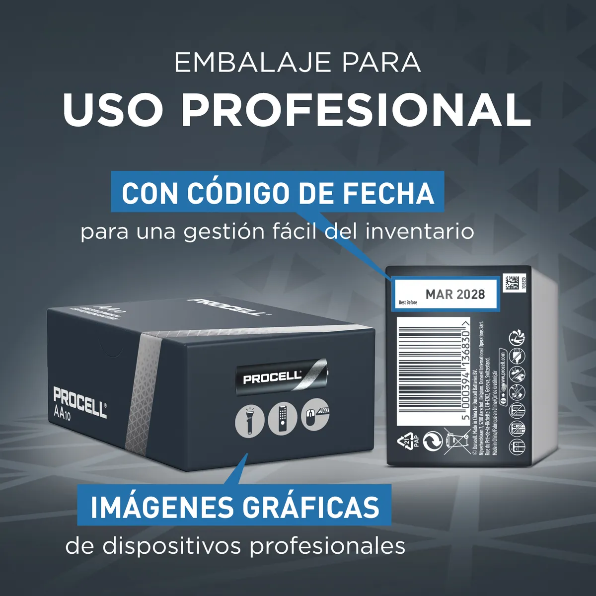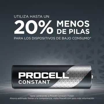 Ofrece una potencia más duradera (frente a las pilas anteriores Procell Alcalina AA) en dispositivos profesionales de alto consumo, lo que se traduce en menos reemplazos de baterías, así como en una reducción de los costes operacionales asociados
