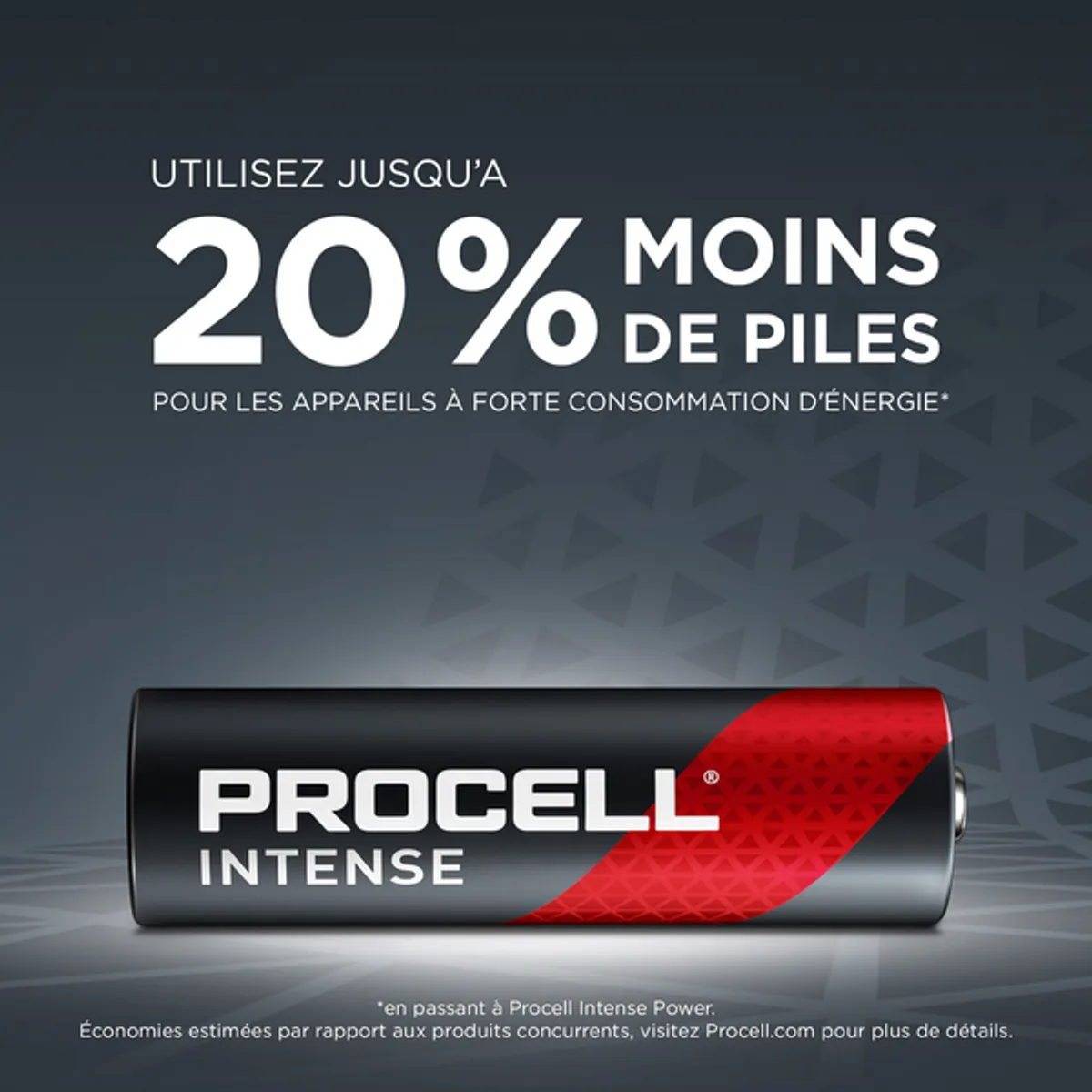 Faites économiser jusqu'à 20 % à votre entreprise en adoptant la double gamme de produits Procell - Procell Constant pour les appareils à faible consommation d'énergie et Procell Intense pour les appareils à forte consommation d'énergie (économies estimées par rapport aux produits concurrents)