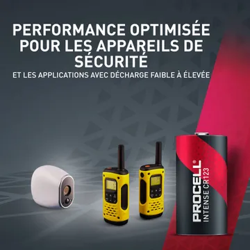 Les piles industrielles au lithium High Power Procell CR123 sont conçues pour fournir une alimentation fiable et sécurisée dans les appareils professionnels à forte consommation d’énergie intermittente ou continue, tels que les équipements de sécurité.