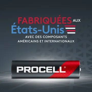 Fabriqué aux États-Unis avec des composants américains et mondiaux par la société Duracell.