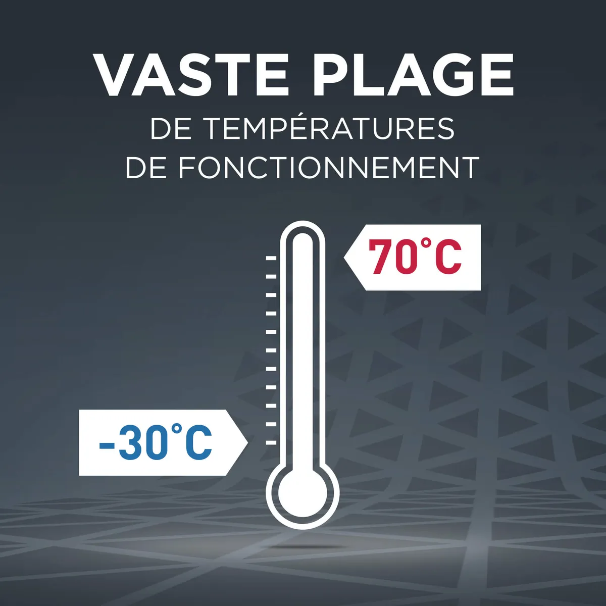 Températures de fonctionnement de -30°C à 70°C.