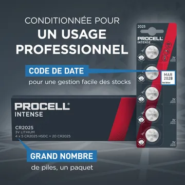 Les piles boutons au lithium industrielles Procell 2025 sont conçues pour fournir une alimentation fiable et sécurisée dans les appareils professionnels. Pour prévenir les ingestions accidentelles des enfants, Procell a développé des emballages inviolables avec double blister pour qu’il soit impossible à un enfant de les ouvrir sans ciseaux et un revêtement amer a été appliqué sur le dos de la pile pour dissuader les ingestions. Aussi disponibles dans les formats 2032 et 2016.