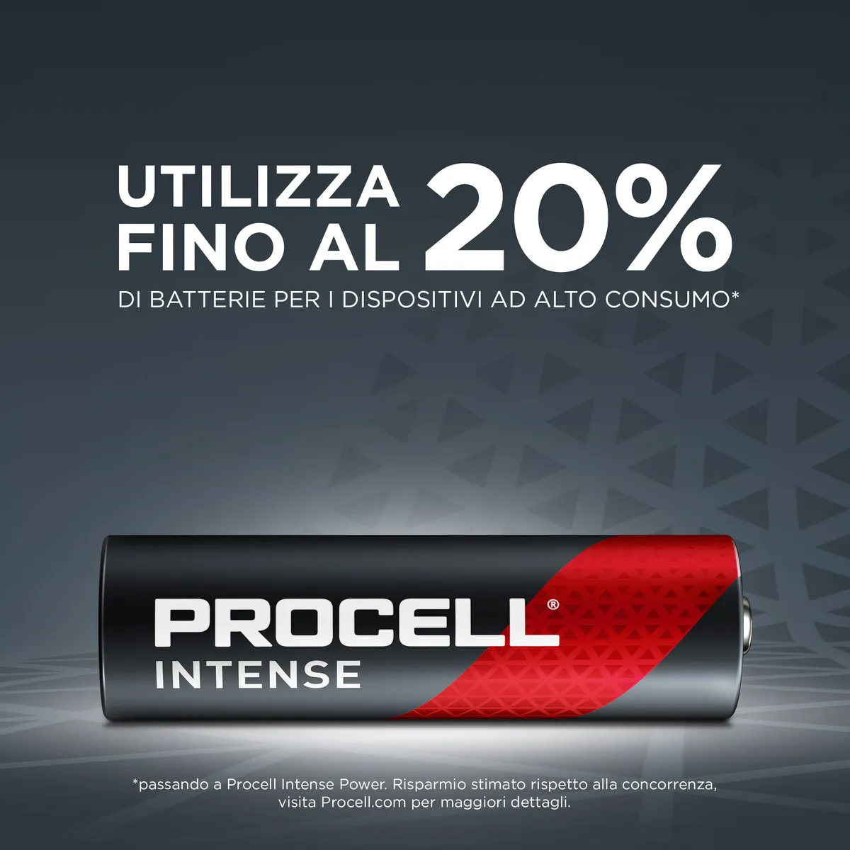 Risparmia fino al 20% passando alla coppia Procell - Procell Constant per i dispositivi a basso consumo e Procell Intense per quelli ad alto consumo (risparmio stimato rispetto alla concorrenza)
