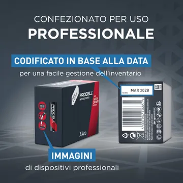 Offre una maggiore durata (rispetto alle precedenti batterie alcaline AA Procell) in dispositivi professionali ad alto consumo, il che può comportare un minor numero di sostituzioni di batterie e quindi un risparmio sui costi operativi associati alla sostituzione delle batterie
