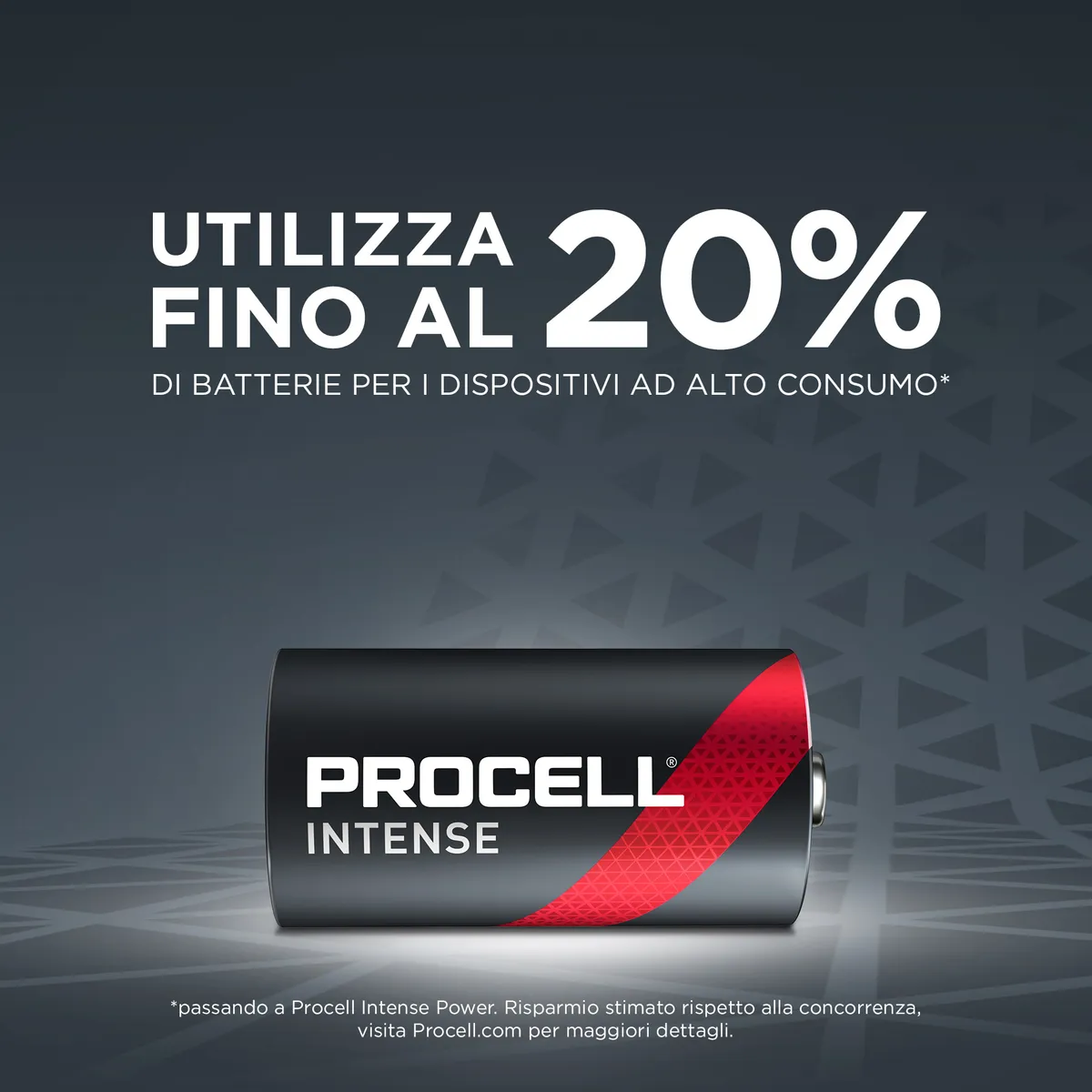 Risparmia fino al 20% passando alla coppia Procell - Procell Constant per i dispositivi a basso consumo e Procell Intense per quelli ad alto consumo (risparmio stimato rispetto alla concorrenza)
