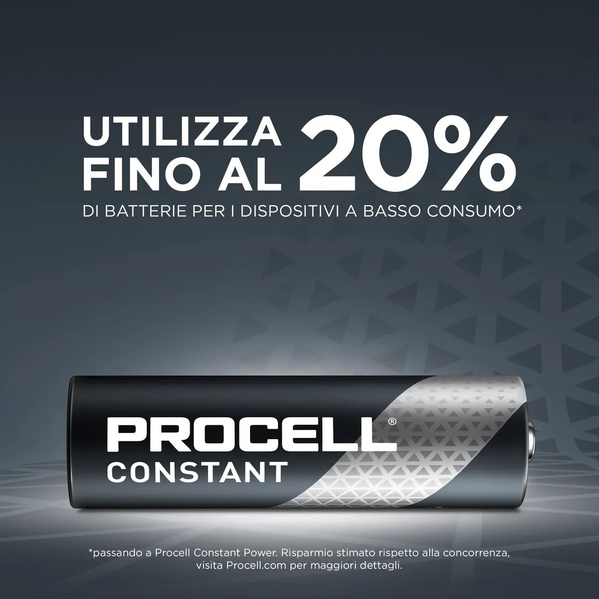 Risparmia fino al 20% passando alla coppia Procell - Procell Constant per i dispositivi a basso consumo e Procell Intense per quelli ad alto consumo (risparmio stimato rispetto alla concorrenza)