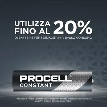 Risparmia fino al 20% passando alla coppia Procell - Procell Constant per i dispositivi a basso consumo e Procell Intense per quelli ad alto consumo (risparmio stimato rispetto alla concorrenza)