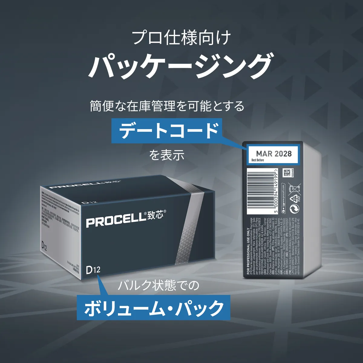 プロセルアルカリ電池は、プロ用デバイスで最適に動作するようにメーカーと共同で設計されています。