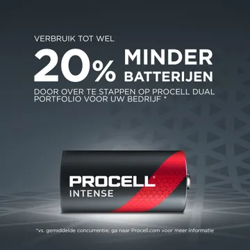 Verbruik tot wel 20% minder batterijen door over te stappen op Procell dual portfolio voor uw bedrijf (vs. gemiddelde concurrentie).