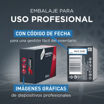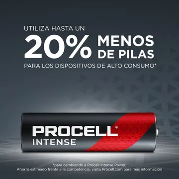 As pilhas industriais Procell Intense alcalinas AA foram especificamente concebidas para durar mais tempo (em comparação com as anteriores pilhas Procell alcalinas AA) em dispositivos profissionais de alto consumo que requerem uma elevada quantidade de energia ou picos de energia, tais como fechaduras eletrónicas de portas, dispensadores de sabonete ou câmaras de segurança.