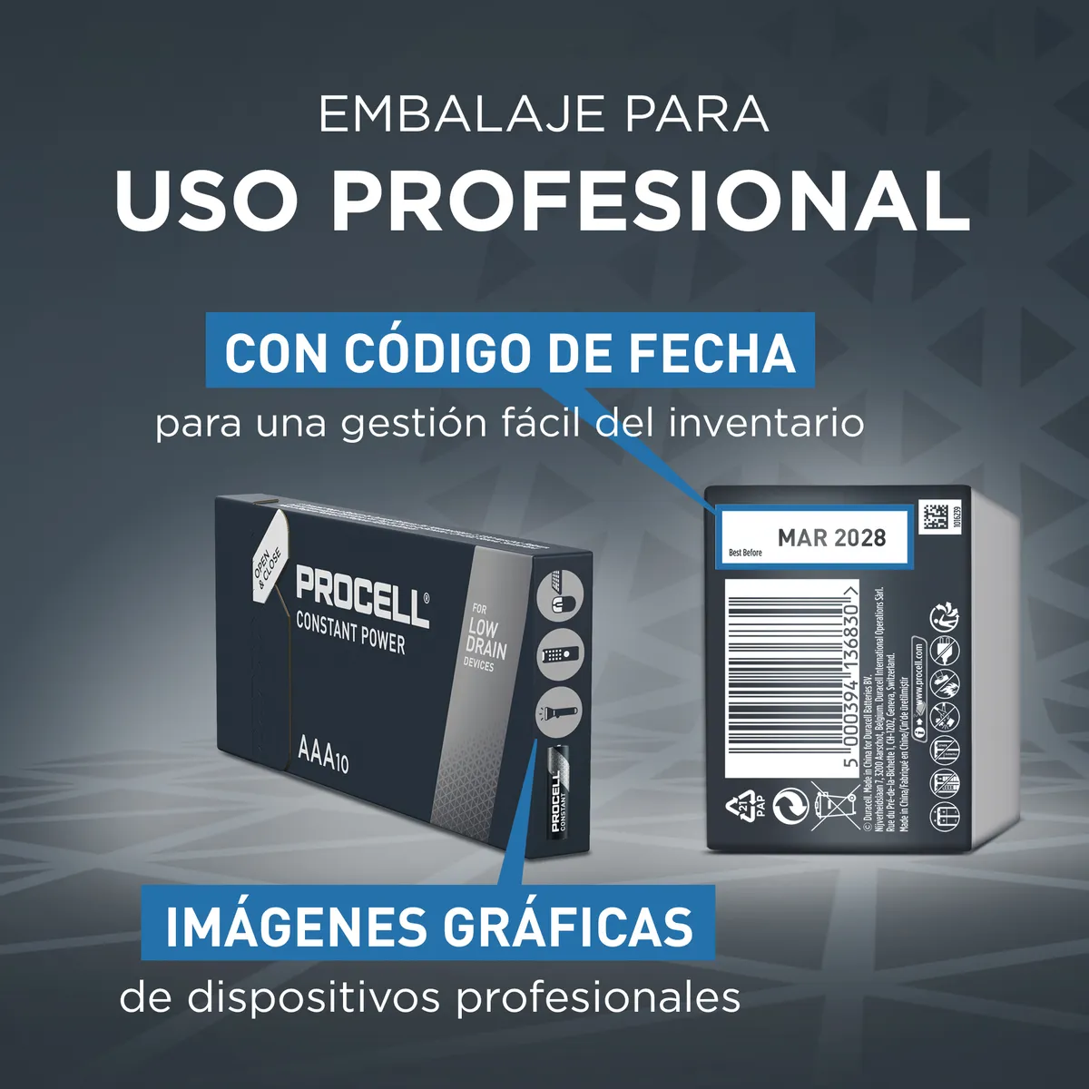 Com embalagem económica a granel e com código de duração individual para uma gestão eficaz do inventário.