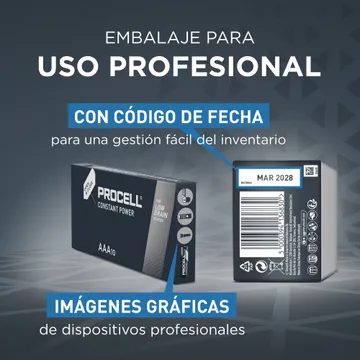 As pilhas industriais Procell Constant alcalinas AAA são ideais para alimentar dispositivos profissionais de baixo consumo que requerem corrente constante durante um longo período de tempo, tais como teclados de segurança, controlos remotos e glicosímetros.