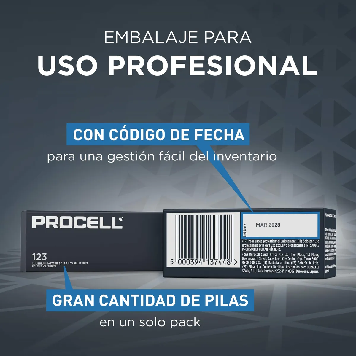 As pilhas industriais Procell High Power Lítio CR123 foram concebidas para fornecer energia fiável e segura em dispositivos profissionais com alto consumo e sob utilização intermitente ou contínua, tais como equipamentos de segurança.